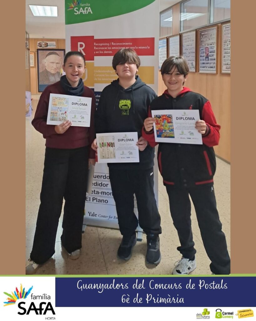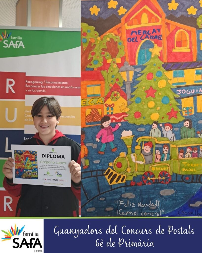 Enhorabona els tres alumnes guanyadors del Concurs de disseny de la postal nadalenca 2025 organitzat per l’Associació de Comerciants Carmel Comerç dins el marc del projecte “El comerç i les escoles”.